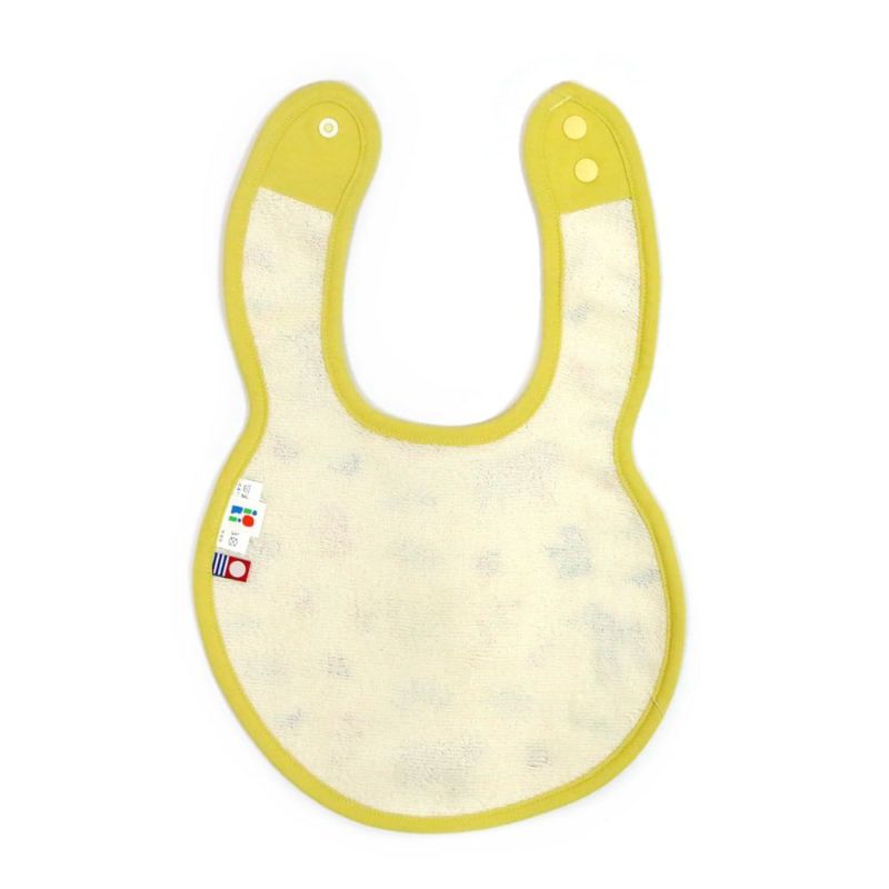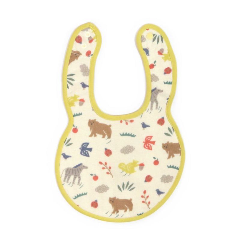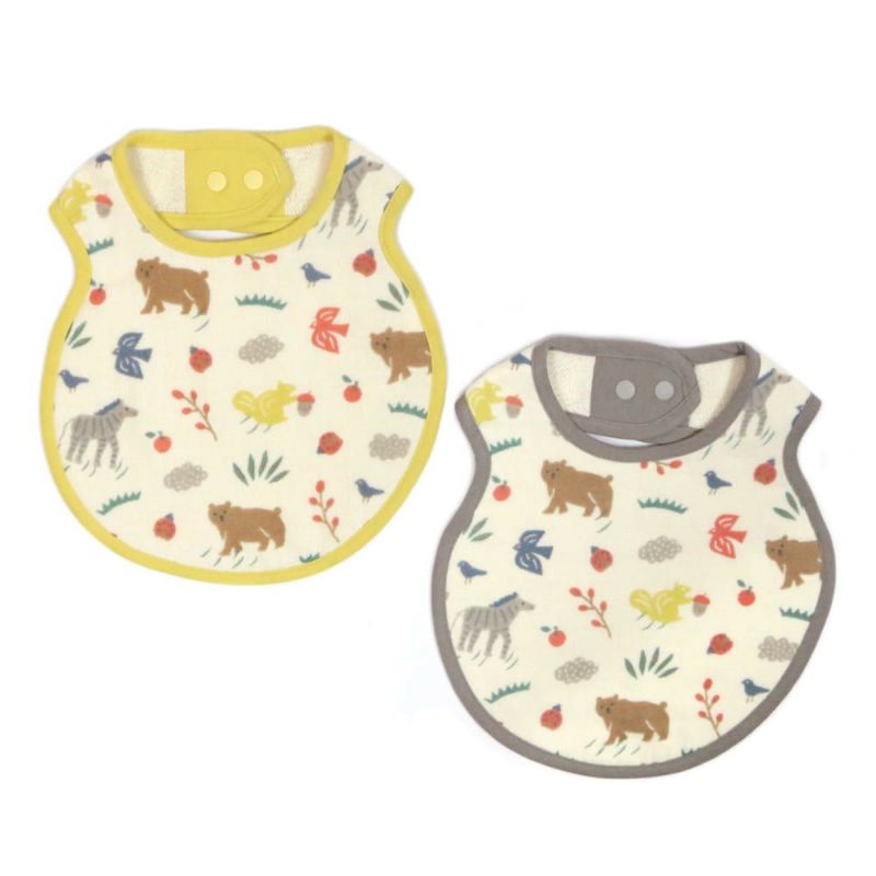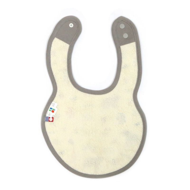 お顔からまぁるく垂れ下がったようなかわいいラウンド型のスタイ。すこし大きめ&やわらかいガーゼ素材でお口周りを拭き取るのにやさしい設計となっています。