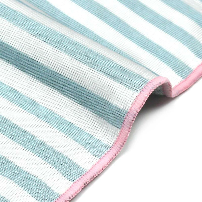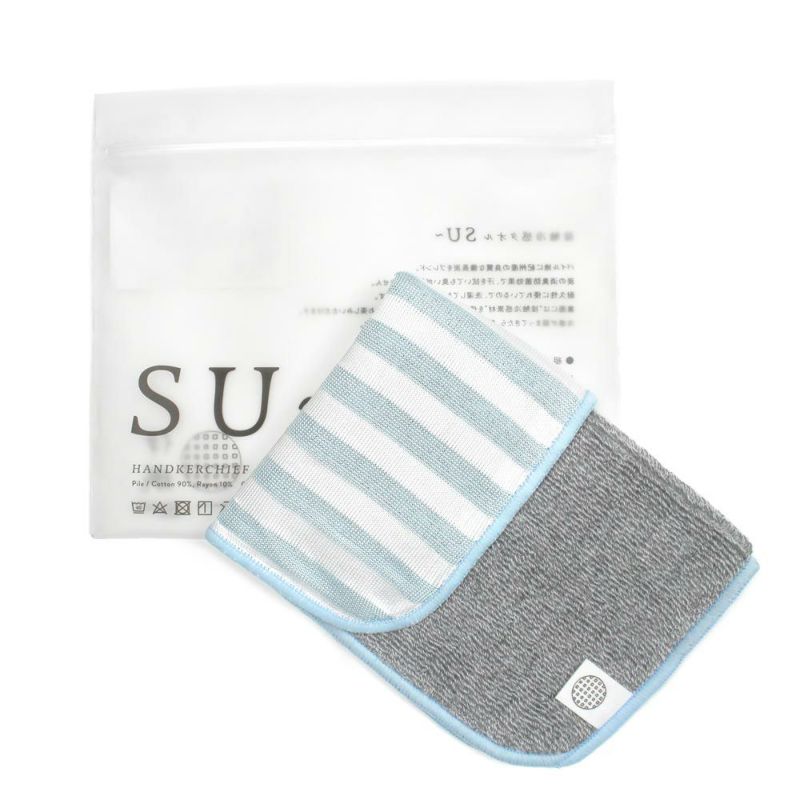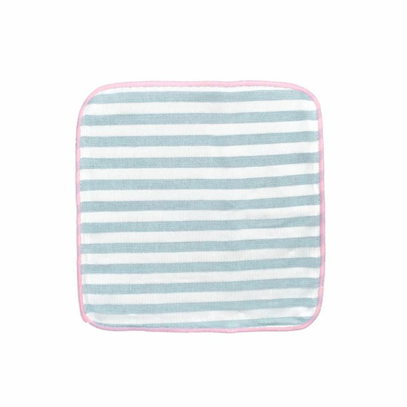 裏面(パイルではないボーダー面)に“接触冷感素材”を使用しているので、SU~ッと冷たい触感をお楽しみいただけます。冷感が弱まってきたら、軽く振って風を通すと何度でも冷感が戻ります。コンパクトなハンカチサイズなので持ち運びも便利。暑い夏にはお出かけ時のお供にも。