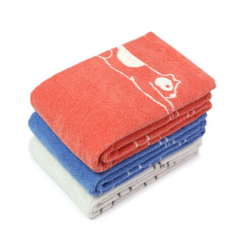 イラストを手がけたのは、アパレルブランドのグラフィックやキャラクターデザインなど幅広く活動するイラストレーターの大西真平さん。ネコ、ヘビ、ゾウ、ペンギンなど動物たちのシルエットが『IORI』のアルファベットになっている、シンプルながらも楽しい今治タオルです。コーラル・マリン・オフホワイトの3色展開。裏表で色が反転するジャカード織りは、雰囲気の違いを両面でお楽しみいただけます。出産祝い・ベビーギフトにも最適です。