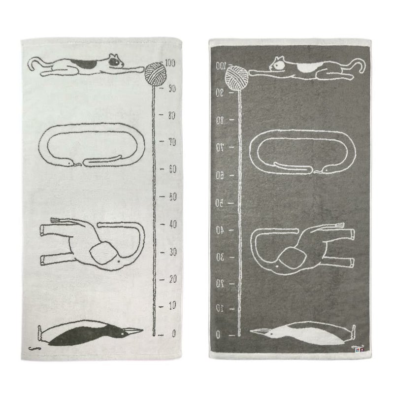 極上の肌触りを追求した身長計バスタオル。無撚糸という柔らかい糸の周りに極細の繊維を巻きつけた糸を使い、柔らかさと適度なハリをもたせました。