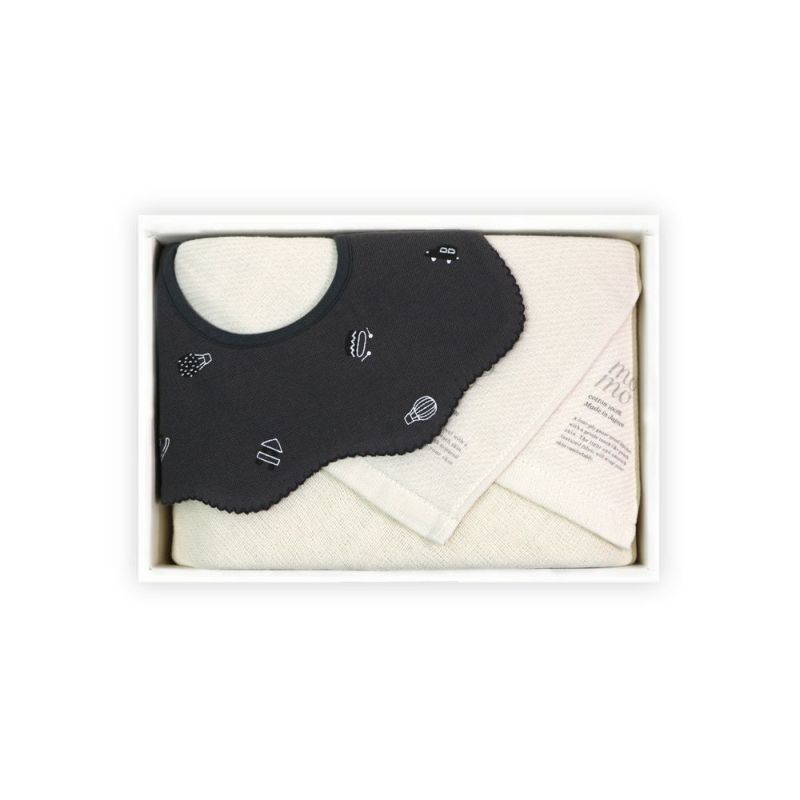 「子育てをするママが本当に欲しい」と思えるベビーアイテムをコンセプトに作られた『IORI BABY×FORNE オーガニック』のラウンドスタイと、肌に滑り込むようなさらりとした感触で、赤ちゃんのデリケートな肌も優しく包み込む『momo baby-モモベビー』のフェイスタオル、ハンドタオルをお入れしたベビーギフトセット。
