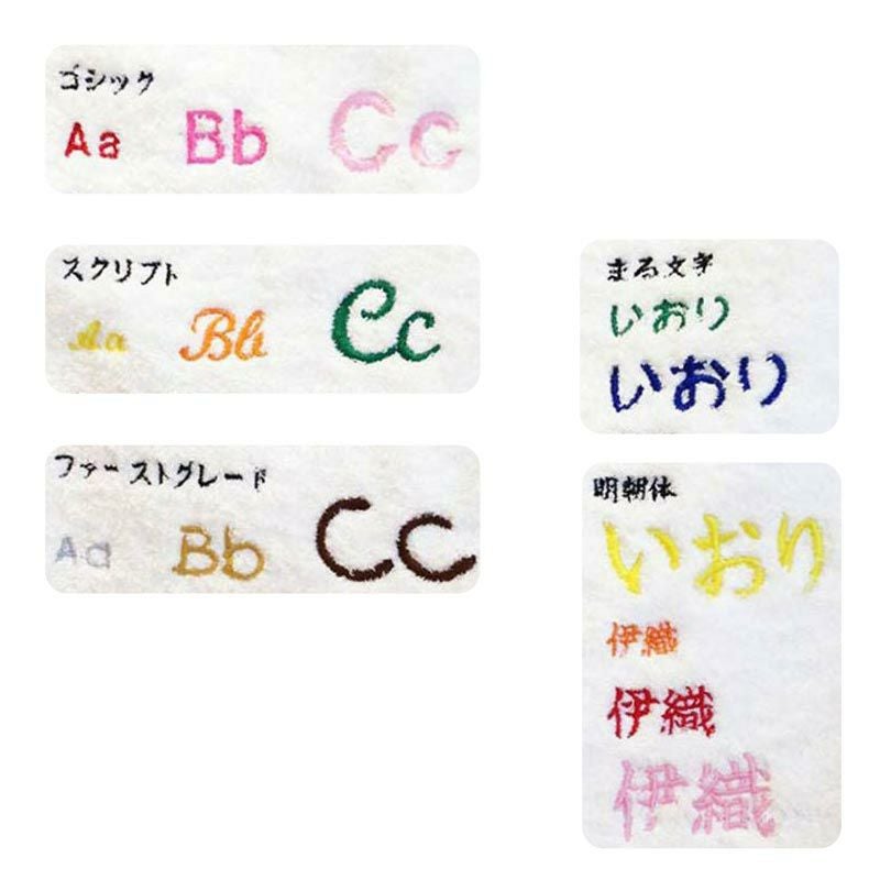 ご購入いただく商品に、お名前や数字、イニシャルの刺繍(名入れ)をすることができます。