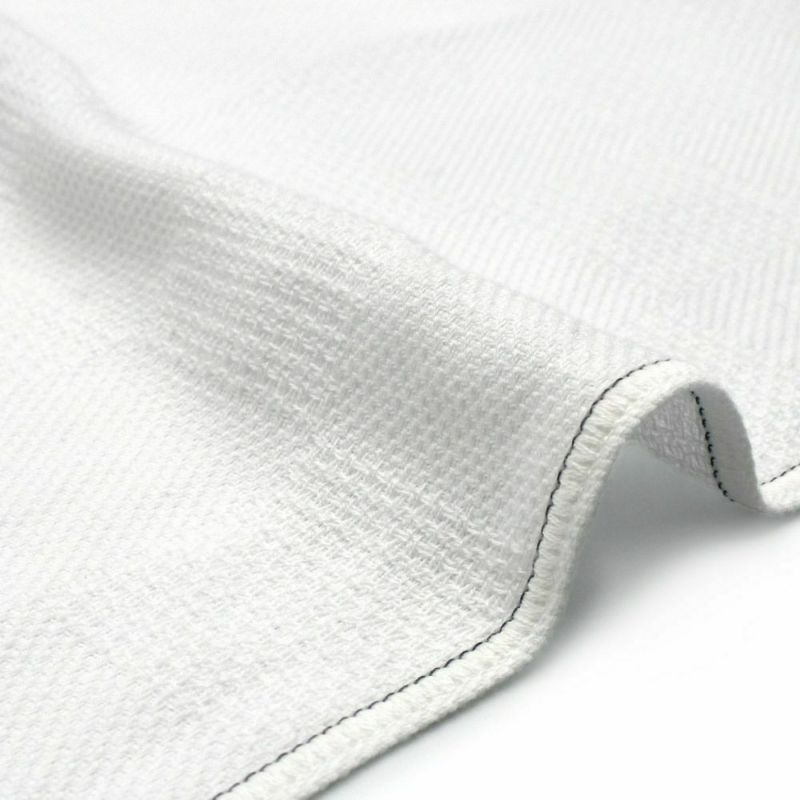 パイルがなくても吸水性が大きく損なわれることがないように、織りにこだわりました。 ガーゼのように表面が均一な織物とは異なり、細かな凹凸のある組織織りがしっかり水気を吸い上げてくれます。また、表情に変化をつけた織り方なので乾燥機にかけてもシワになりにくい特長もあります。