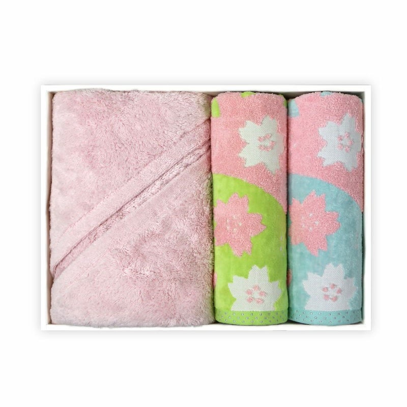 『sakura-サクラ』フェイスタオル2枚『IORINO/ふわふわ』(ピンク)バスタオル3枚組ギフトセット【LL箱】