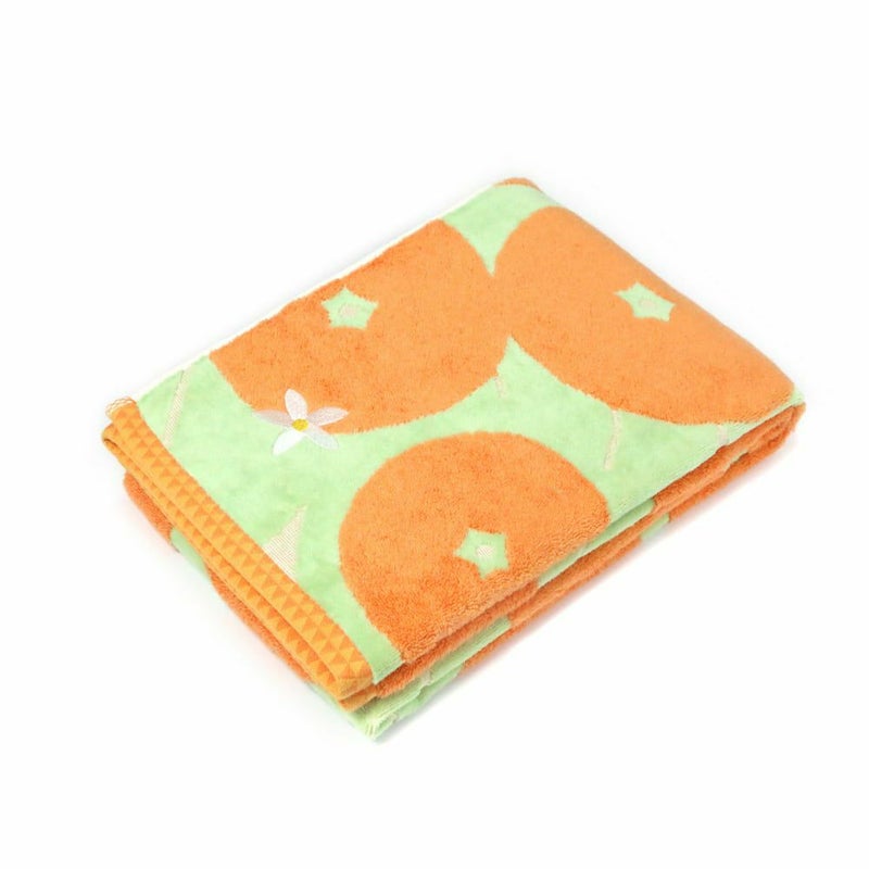 ふっくらと柔らかな無撚糸と、サラサラな手触りが心地よいシャーリングを組み合わせた、伊織の得意なファブリック・スタイルなタオル。愛媛を代表する柑橘「伊予柑」をモチーフに、たわわに実った伊予柑の甘酸っぱい香りが漂ってくるような爽やかなタオルです。