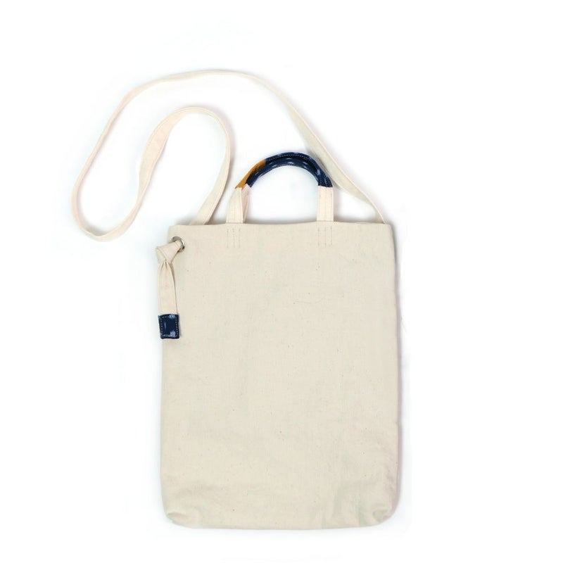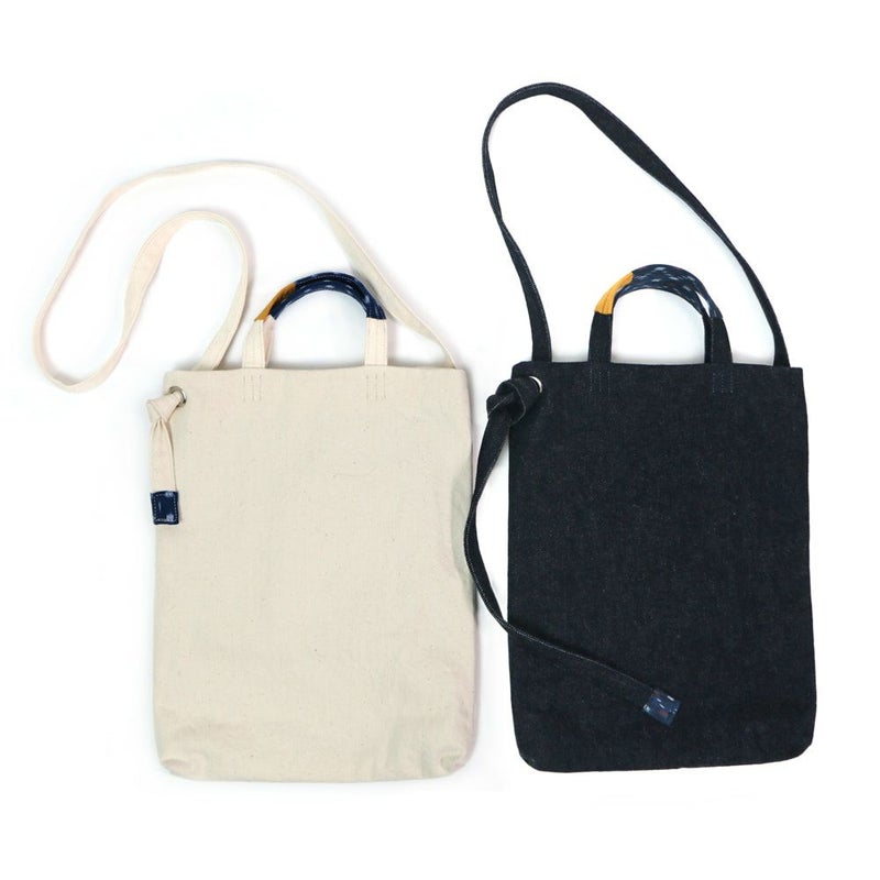 これまで今治タオルの残糸をアップサイクルしたタオルシリーズの他、奈良の老舗靴下メーカーとコラボして作ったタオルの残糸の靴下など、様々なアップサイクル製品を生み出してきましたが、今回は日本三大絣のひとつであり、愛媛県伝統的特産品でもある「伊予かすり」とコラボした2種類のかばん、トート「TOOL」とショルダー「NOTE」が登場しました。