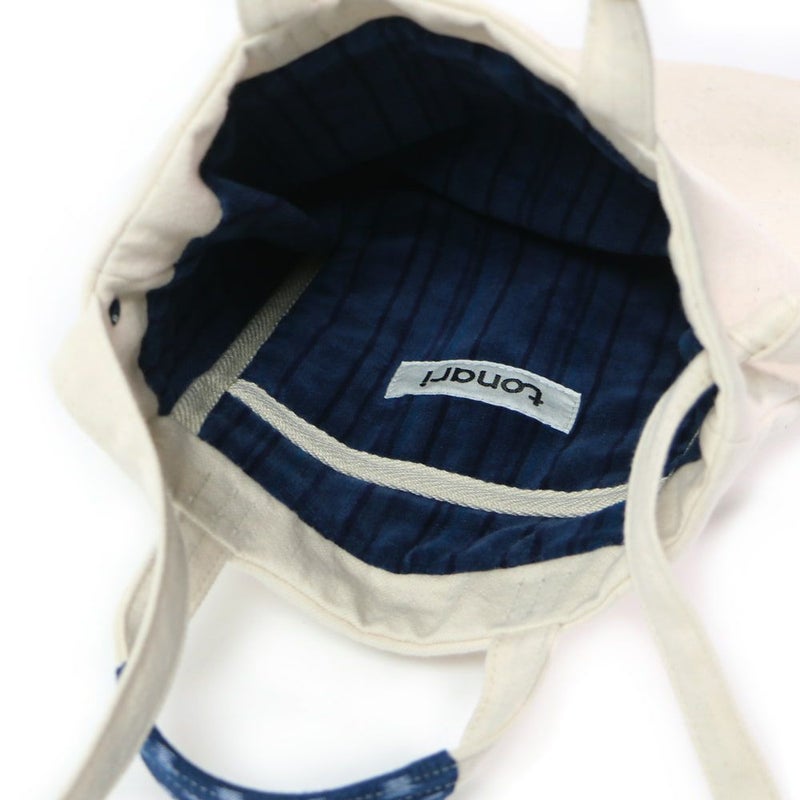 tonari プロジェクトには欠かせないプロダクトとして作り続けてきた「残糸のタオル」。今治タオルを織る際に余ってしまう、新品の糸を集めて織り直したアップサイクルタオルですが、今回はその残糸のタオルを贅沢にかばんの内張りに使いました。機能性を持たせるために強度を高め、パイルの引っかかりも無くした特別な織り方で、しっかりとかばんの中に入れるアイテムを保護する役割を果たしています。