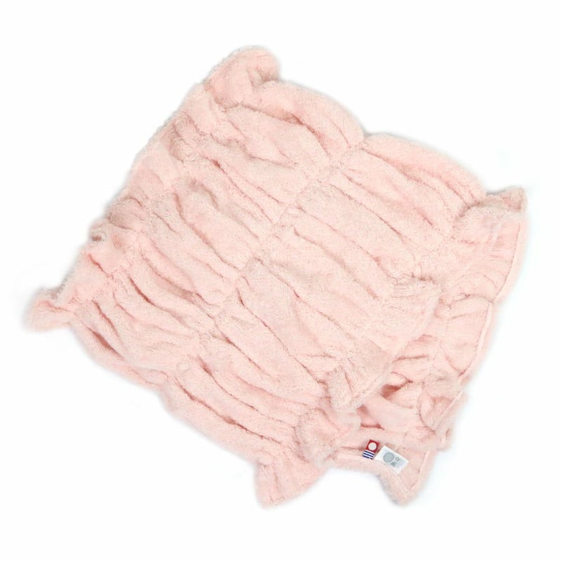 生地中に伸縮性を持たせた、オープンタイプのヘアターバン。お風呂上がりに髪を拭いてそのまま頭に巻くとしっかりフィットするのでターバンとして使うことができます。