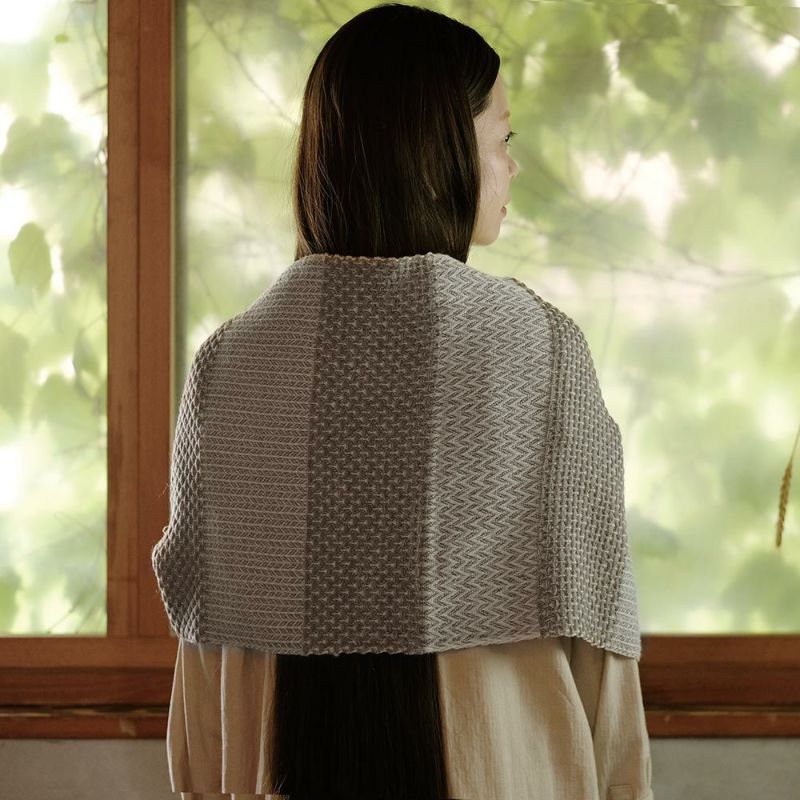 ざっくりとした織り模様からは、ウール本来のふっくらとしたあたたかみを存分に感じられます。ボーダー感の強い表と弱い裏、リバーシブルに見える織りのマジックは身に着けるときのお楽しみ。