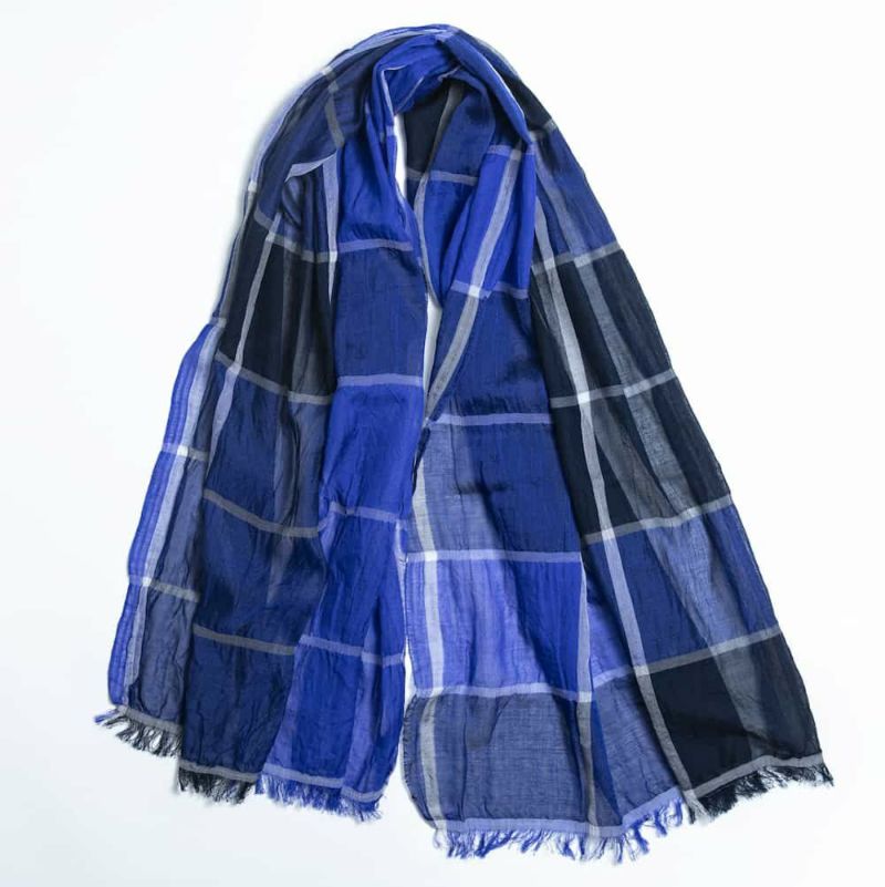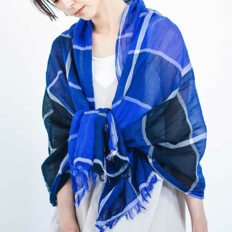 『SHIBO コットンショール パネルチェック』ブルー