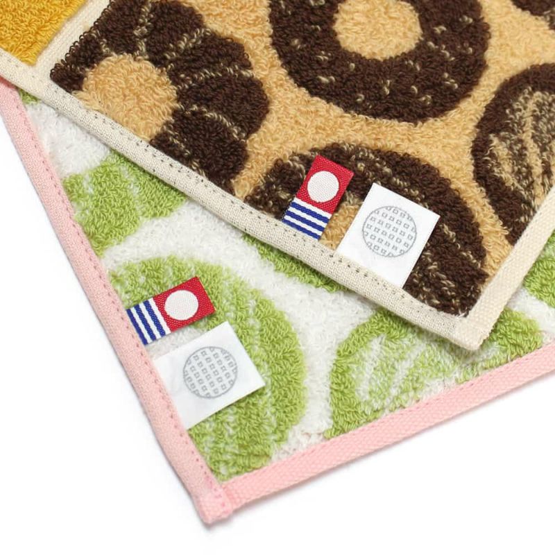 小さめバッグにも収まるコンパクトなハーフハンカチシリーズに、ふわふわの無撚糸をつかったかわいいスイーツ柄が登場しました。