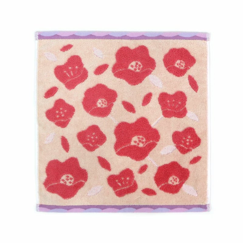 日本庭園や神社にもよく植えられ、古くから日本を代表する花木の一つとして親しまれてきた椿の花。その気品ある姿は庭木や生け花の素材としても重宝されています。昔から和の文化や生活に深く根付いている椿の花を伊織らしく現代的な配色に落とし込み、伝統的なモチーフでありながら新しさと若々しさを感じるタオルに仕上げました。