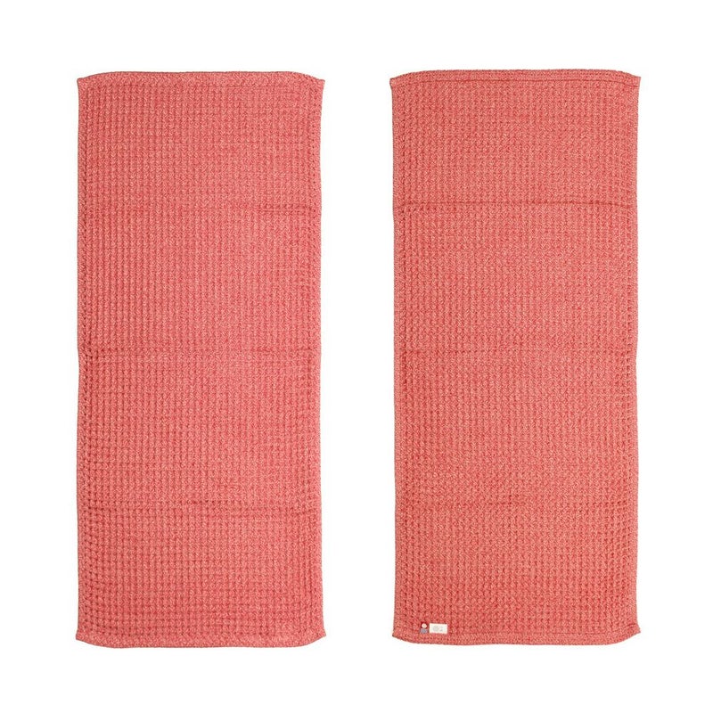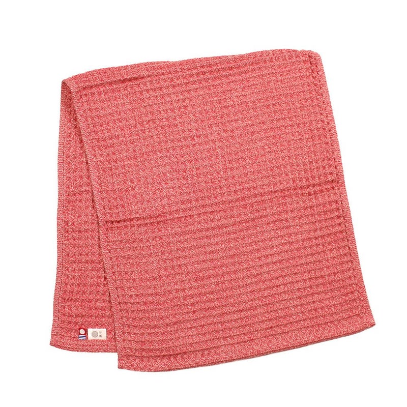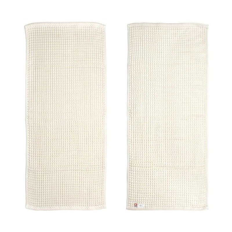 一風変わった見た目に反して、最高級超長綿(原綿ピマ100%)を極甘撚りに仕上げた糸を使った、ふっくらと柔らかく、毛羽落ちの少ないタオル。水分をすばやく吸収してくれる凸凹としたワッフル織りは、肌に触れる面積が少なく通気性に優れているので、さっぱりと軽やかな肌ざわりで、乾きも早いのが特徴です。