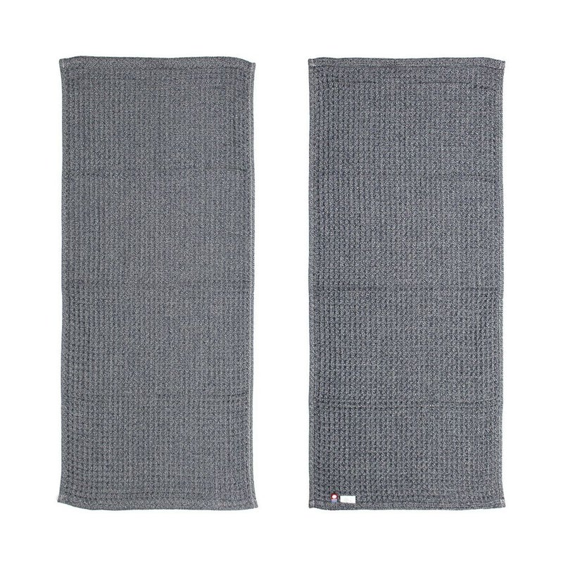 2色の糸を撚り合わせた「杢糸(もくいと)」を使うことで、耐久性を高めるだけでなく、個性豊かな表情も生み出しています。独特の肌ざわりと機能性の高さで、一度使うと繰り返しお買い求めになるお客様が多く、伊織スタッフの愛用率も高いタオルです。