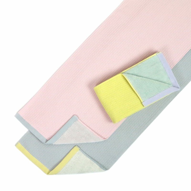 ヨガやランニング、ジムトレーニングなど、スタイリッシュなアクティブウェアにも馴染む全体的にややスモークがかったくすみカラーの3色。発色を抑え気味なので汗皮脂汚れなどが目立ちにくく、男女問わずお使いいただけるシンプルなタオルです。