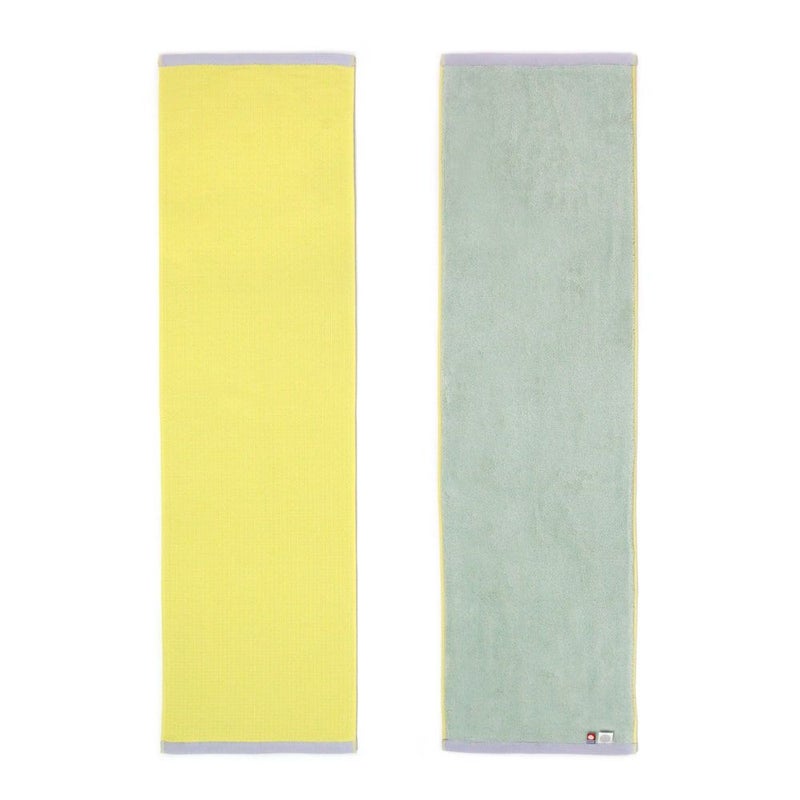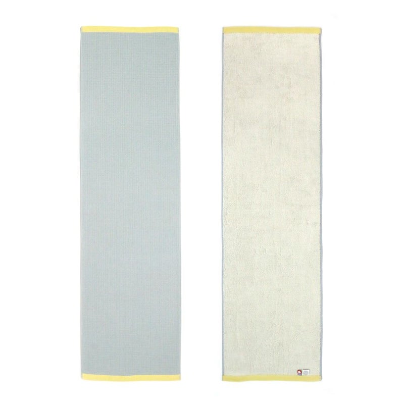 運動後の汗を吸収するだけでなく、肌に触れる感触も重要なスポーツタオル。表はサラリと軽いタッチのワッフル織り、裏はしっかりと汗を吸い上げながら速乾性にも優れた短めパイル。このありそうでなかった実用的な組み合わせは、アクティブシーンでしっかりと活躍してくれます。