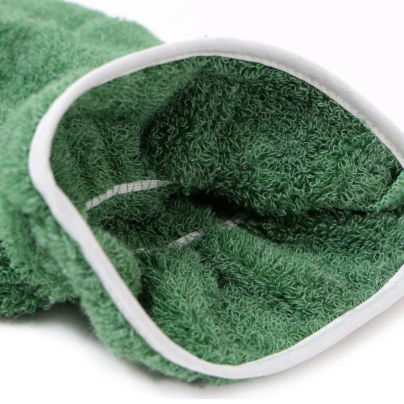 部屋干しでもすぐ乾く「すぐさら」は、ふっかりとした両面パイルで肌触り抜群。その生地を使い、左右どちらの手でもお使いいただける手袋型に仕立てました。ドライヤーで髪を乾かす際に一緒にお使いいただくことで髪が乾きやすくなる人気の時短アイテムです。