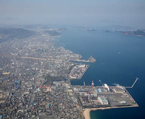 戦後、車社会の到来とともに瀬戸内海ではカーフェリーが増えます。民間で初となるカーフェリーは、今治と瀬戸内海をはさんで対面となる三原との間でした。また、貨物量と旅客の増大に応じて港湾拡張も進みます。カーフェリー自体はしまなみ海道の開通に伴い縮小されましたが、逆にコンテナ航路はその振興のため、1986年にジブクレーンを設置、1996年には四国初となるガントリークレーンも設置されました。東アジアのコンテナハブ、釜山との間に定期便も就航しています。港湾取扱貨物量も100万トンを越え、今治タオルの海外進出に向けても、重要な役割を今後も担うでしょう。(写真出典:観光庁)