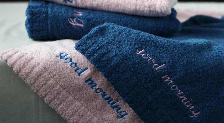 伊織ではご購入のタオル製品への名入れ刺繍も承っております。
