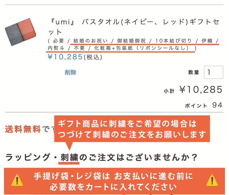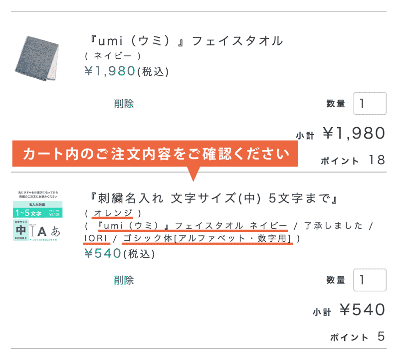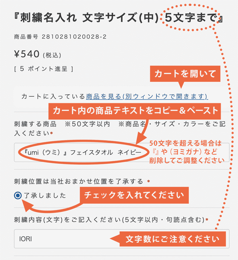 刺繍を入れる商品をカートにお入れください。