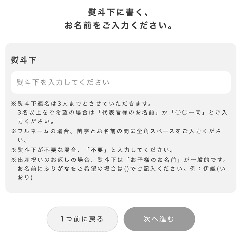 STEP名入れ刺繍ページで必要事項を記入